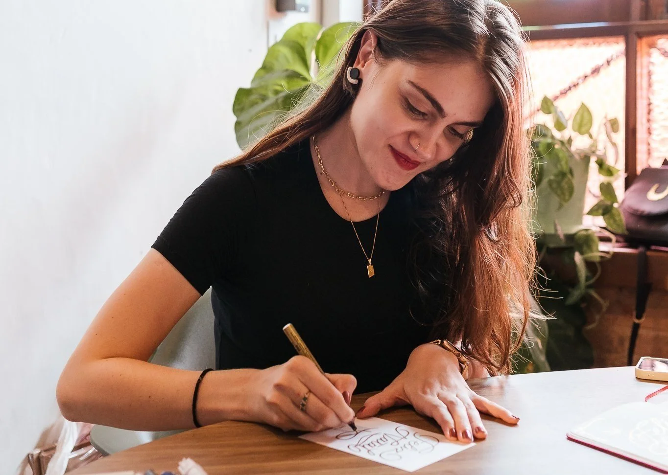I offer engaging lettering and calligraphy workshops specifically tailored for studios, schools, kids, and anyone eager to explore the art of lettering and calligraphy (brush pen or copperplate).